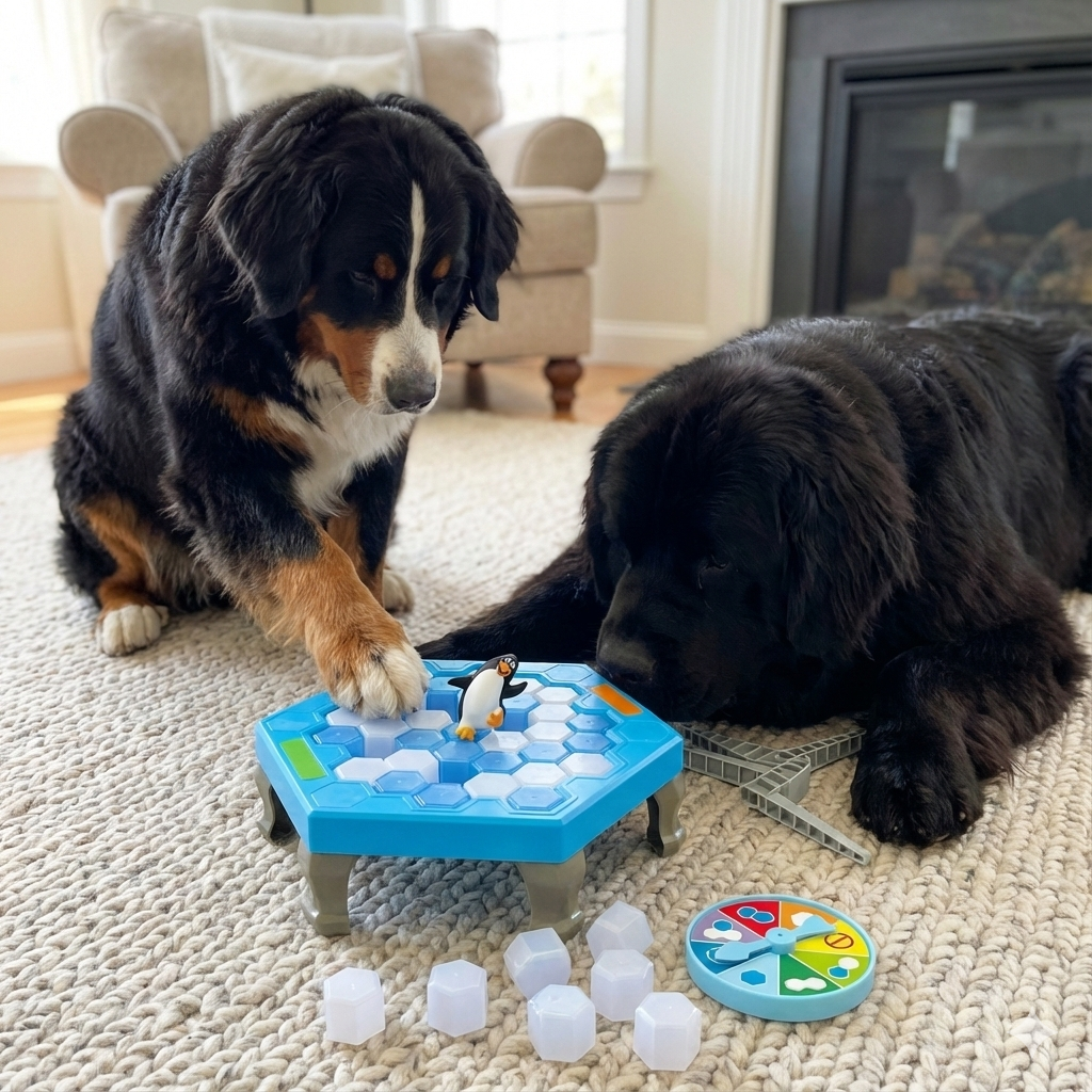 El Veredicto de SantoPerro: Nuestros expertos peludos, el Boyero y el Terranova, intentaron jugar... pero digamos que sus patas son "demasiado eficientes" y botaron todo el tablero de un solo toquecito. 🐾 Así que este juego queda 100% recomendado para humanos desde los 3 años.